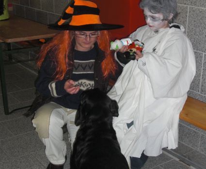 Ab Einbruch der Dunkelheit startete für alle Vier- und Zweibeiner die Halloweenparty mit Maskenwettbewerb. In der Gruselstation der Thermenlandklinik wartete Süßes nicht nur für alle kleinen Geister & Gespenster auf zwei Beinen. Auch Höllenhunde und andere verkleidete Vierbeiner erhielten ebenfalls Belohnungen: Hundetrüffel und Hundekaubonbons! Die lustigsten Hundeverkleidungen wie auch die Kindermasken wurden prämiert. Zu sehen waren unter anderem ein Mops als Teufelchen sowie ein weiterer als Monsterbiene, ein Golden Retriever trug sogar einen kopflosen Reiter auf seinem Rücken.