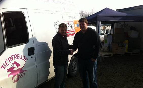 Sachspenden wurden übergeben, die engagierte Tierfreunde aus Wien gesammelt hatten und durch das Tierfreude KFZ angeliefert wurden. Der Lebenshof Fides ist nämlich am 18. Februar dieses Jahres durch einen Brand schwer in Mitleidenschaft gezogen worden.